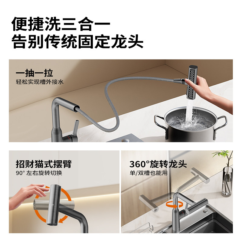 四功能瀑布出水洗菜水龙头 &九牧厨房龙头冷热抽拉式 政府补贴