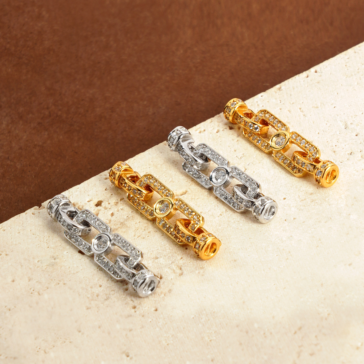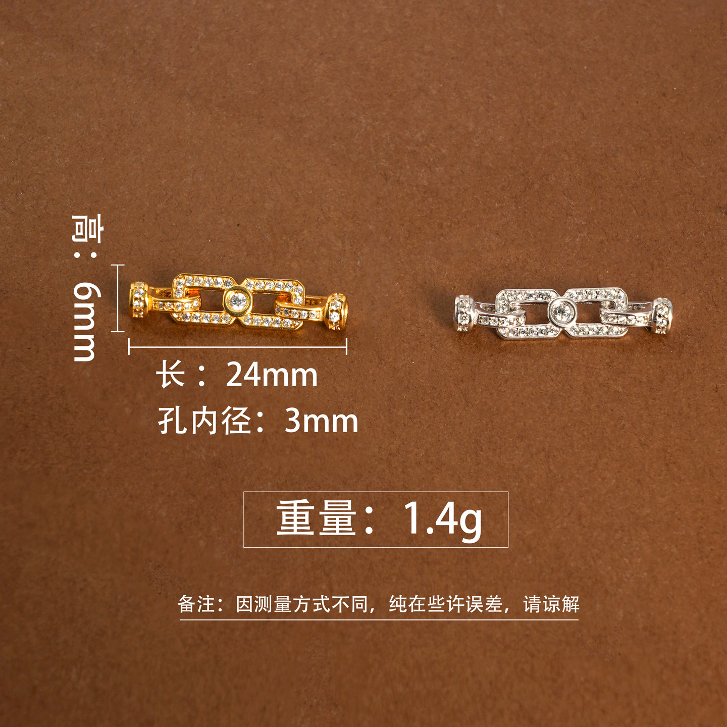 高保色镶钻款 方8字扣子珍珠毛衣链银扣S925纯银DIY手链项链收尾扣