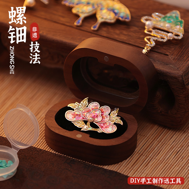 15mm非遗螺钿胸针发簪古风饰物漆画珐琅掐丝材料鲍鱼贝壳薄碎片