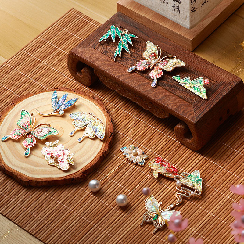 5cm大贝壳片螺钿拼漆画漆艺镶嵌发簪古风饰物摆件珐琅掐丝材料