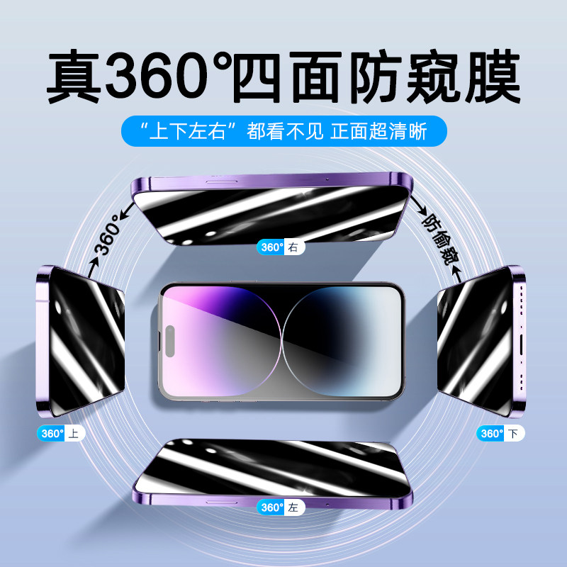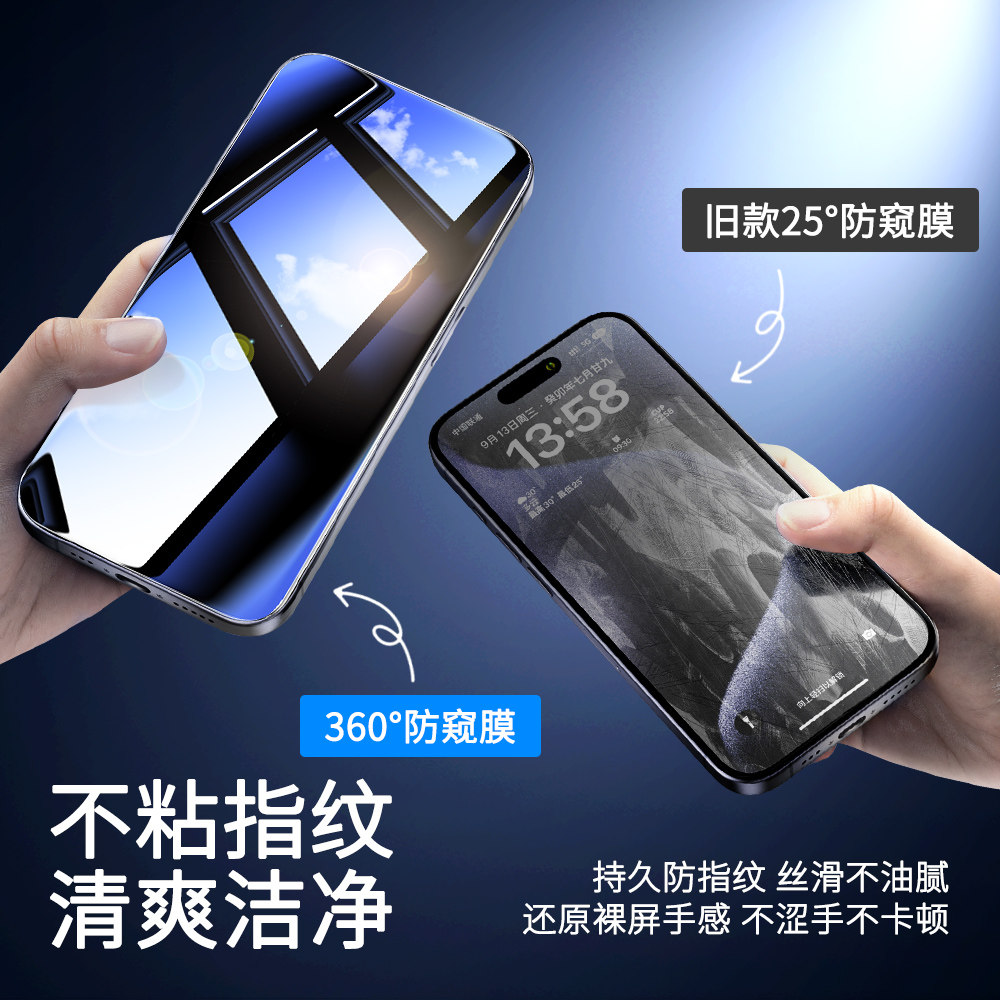 360度防窥适用iPhone16promax无尘仓钢化膜苹果17promax防偷窥手机膜14PRO保护膜12 16E防尘13全屏15秒贴四面