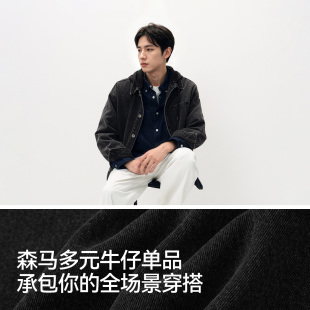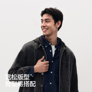 商场同款 连帽外套2025秋新款 森马牛仔夹克男衬衫 工装 式 森柔牛仔