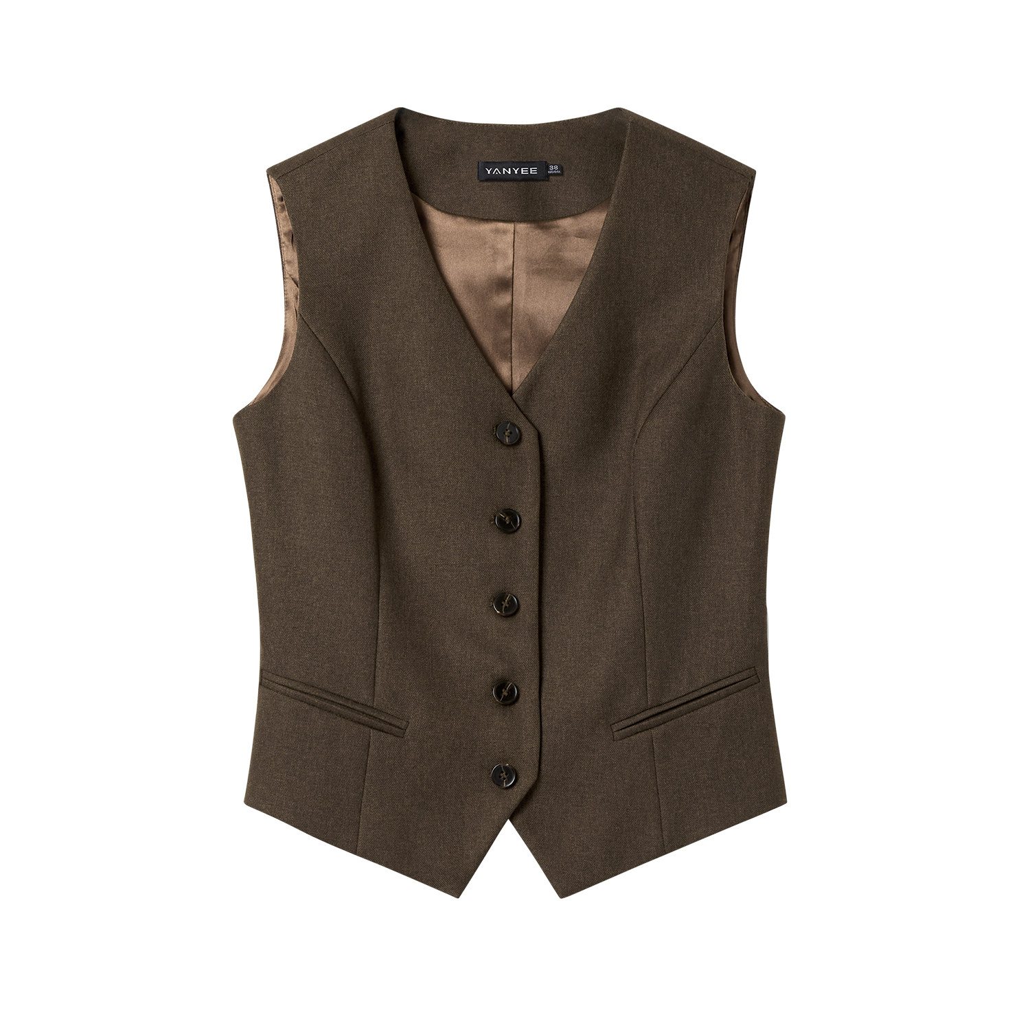 马甲女士2026新款 修身 春季 短款 叠穿气质外套上衣 无袖 颜域咖色西装