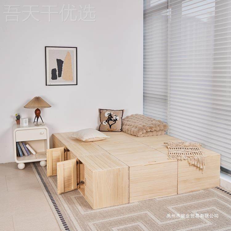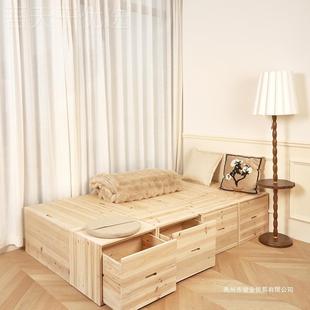 榻榻米木箱拼床实木箱储物AEK床自箱由组床可定加宽飘体窗拼接合