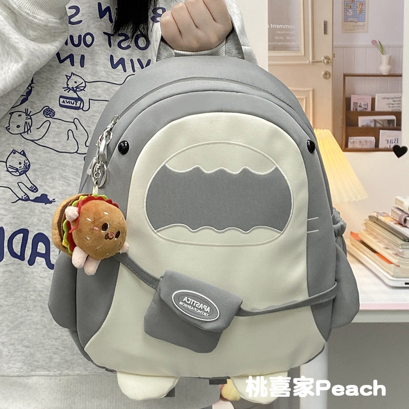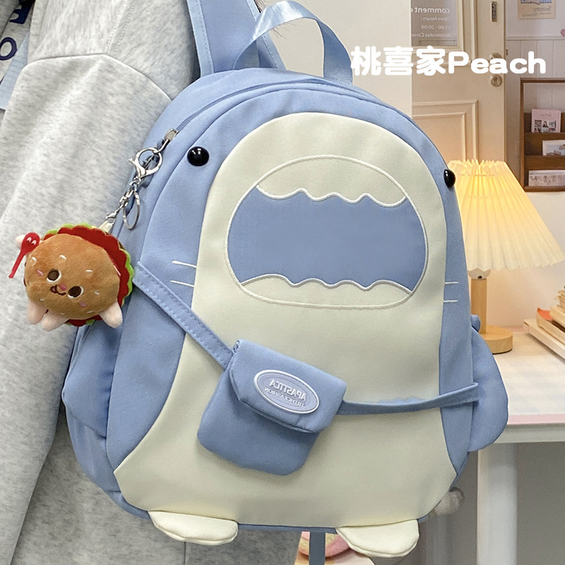 ins韩软萌可爱少女出行背包卡通鲨鱼双肩包男幼儿园小学生书包女