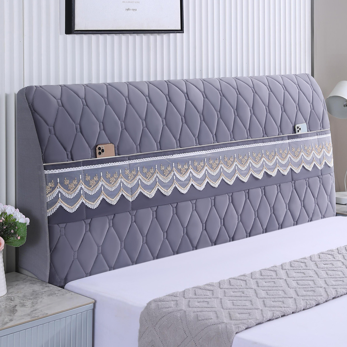 新款 简约靠垫防尘罩 弹力软包床头罩套全包布艺夹棉床头套罩中式