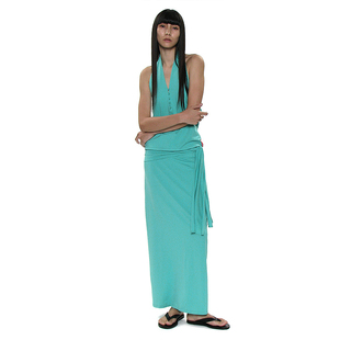 PARTIMENTO 韩国正品 哑光质感高弹力直筒裙 饰长裙 高腰气质绑带装