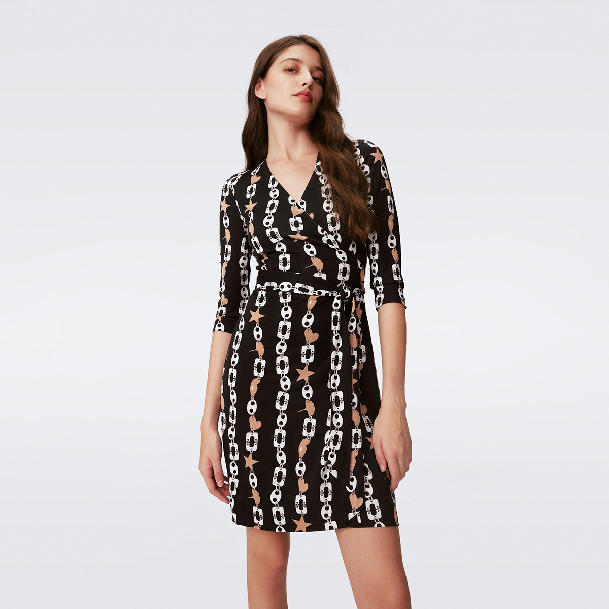 朗姿莱茵福莱尔珠饰星空鱼尾裙女法式 优雅小香风羊毛撞色连衣裙