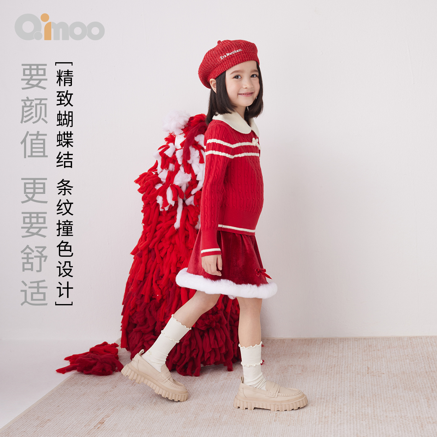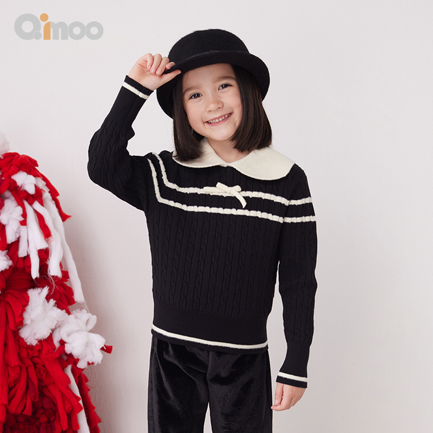 女童学院甜辣针织毛衣套头衫 Qimoo 童装 新款 QCL4TC344C 淇木冬季