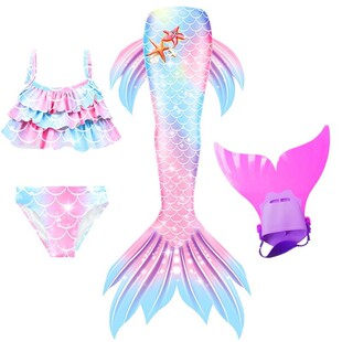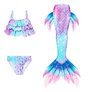 美人鱼尾巴儿童衣服泳衣女孩分体游泳装 女童宝宝公主裙比基尼洋气