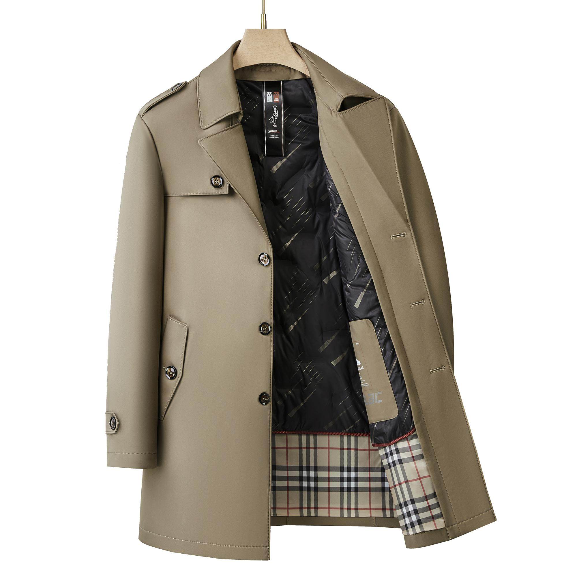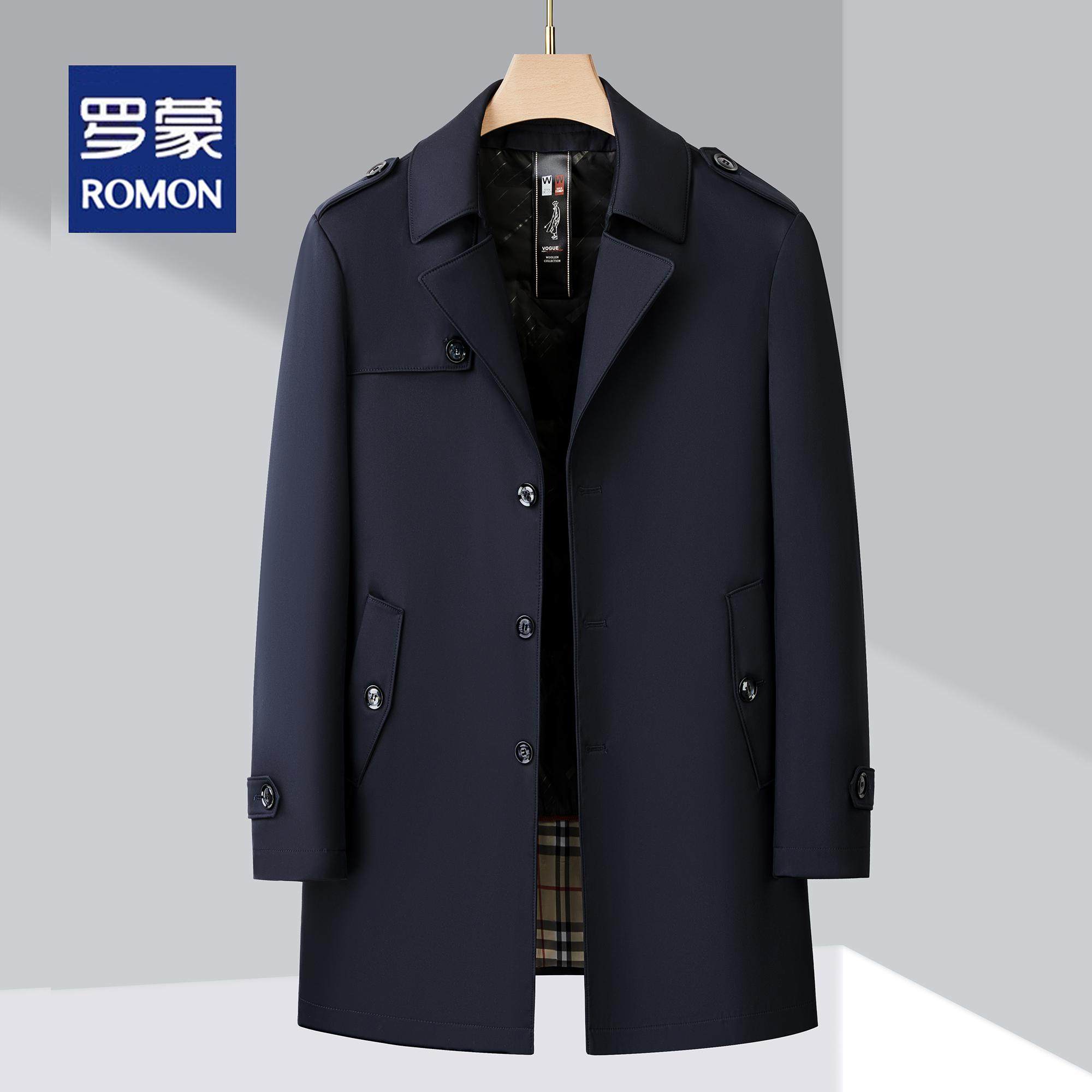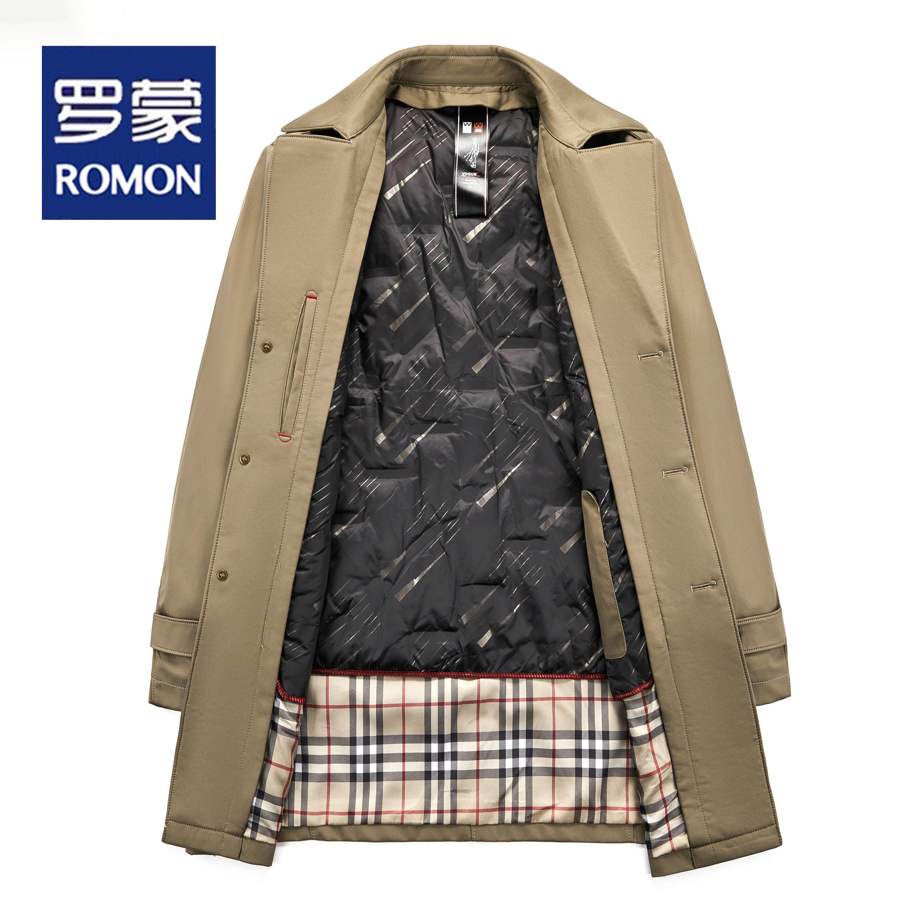 羽绒外套中青年商务翻领中长款 大码 罗蒙男士 风衣 可脱卸内胆