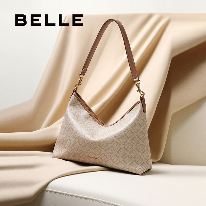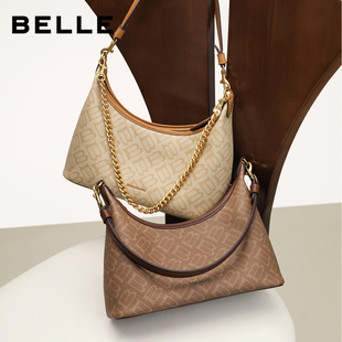 百丽女包2025新款 海鸥老花腋下hobo包大容量真皮斜挎托特包X7199A