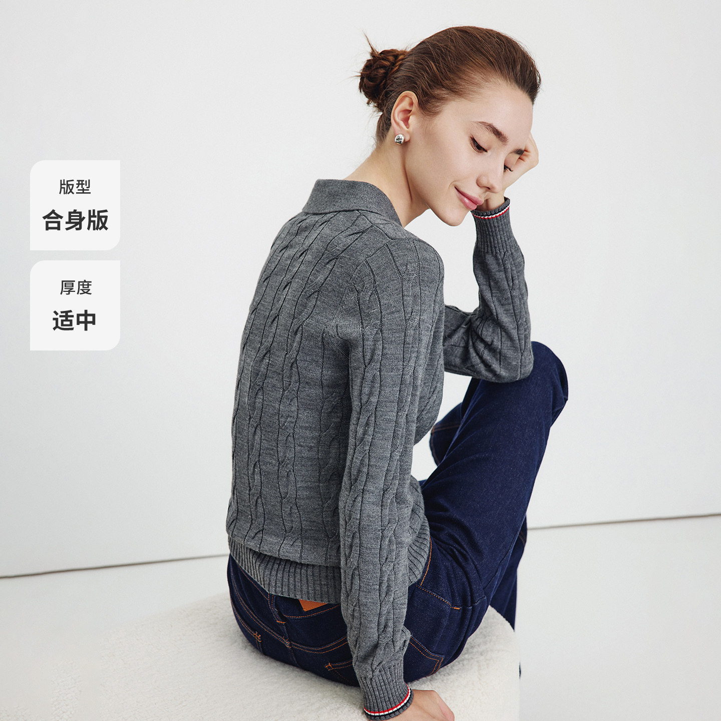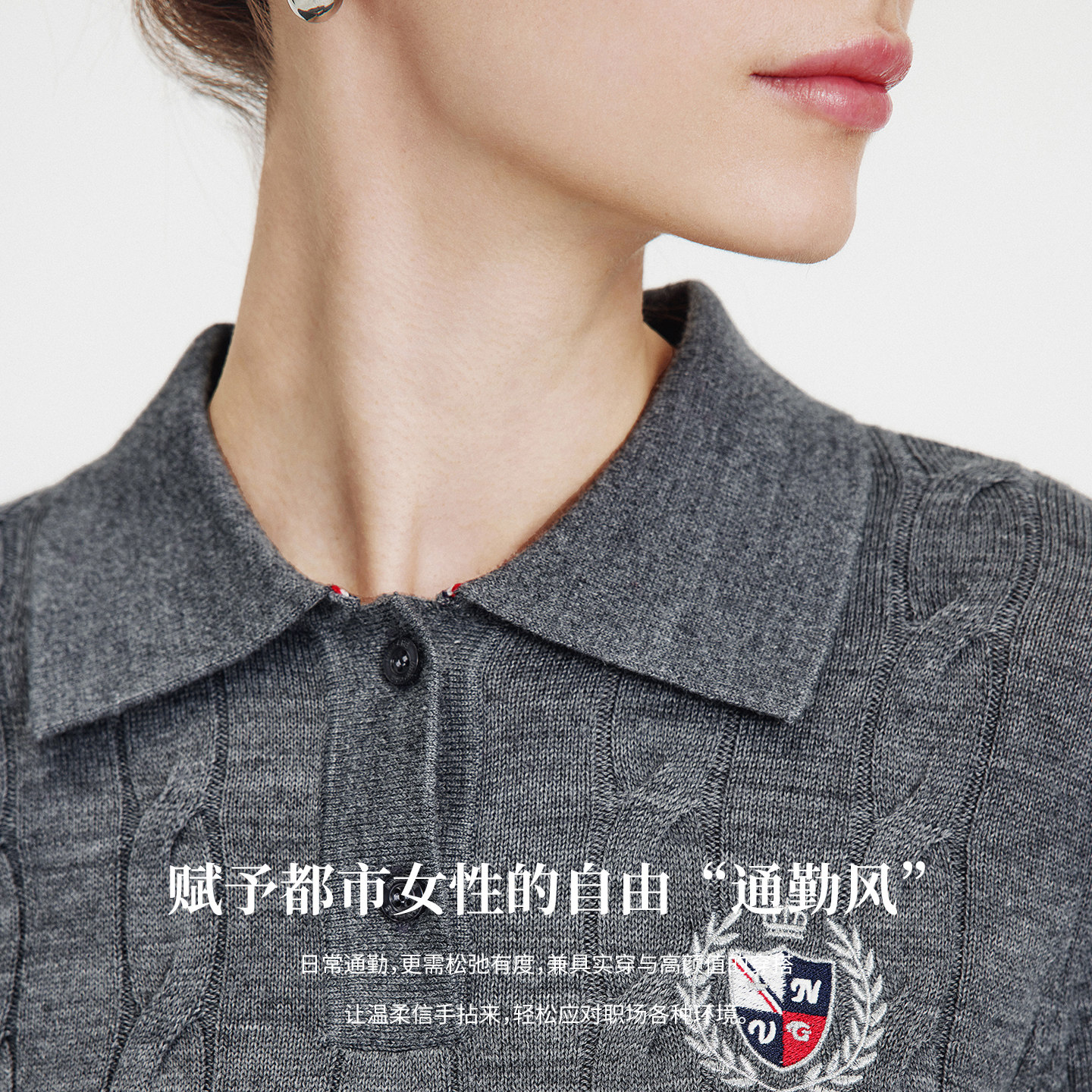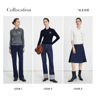 刺绣打底衫 Navigare意大利小帆船羊毛衫 女士翻领毛衣内搭保暖小衫