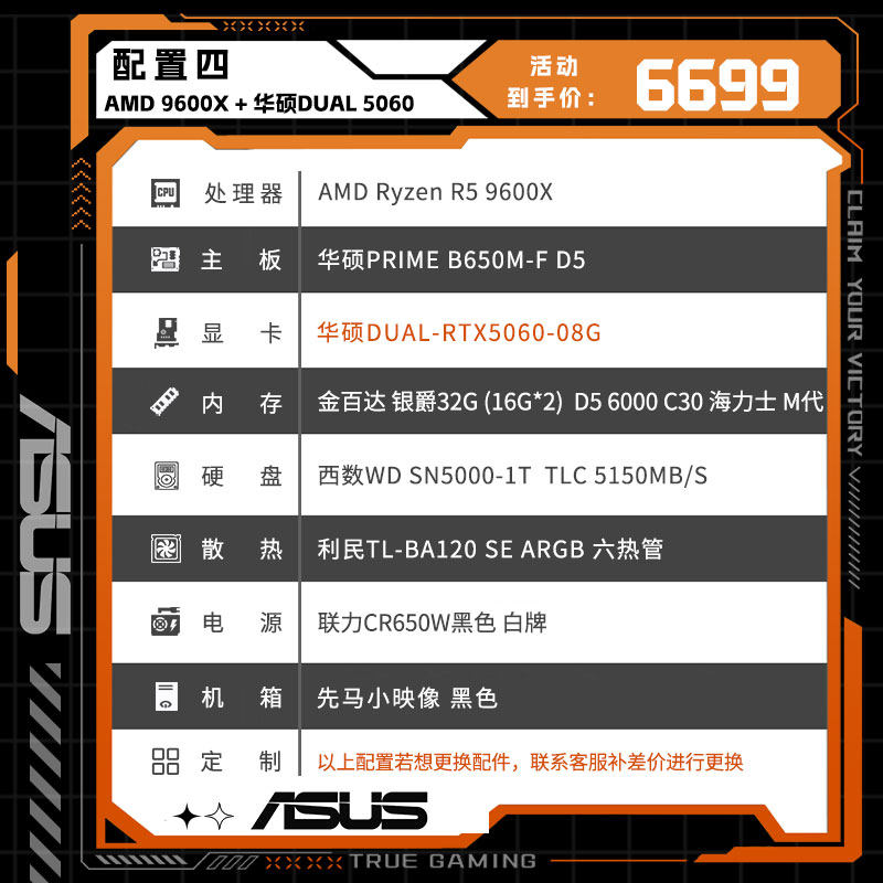 华硕电脑RTX560Ti显卡AMD 9500F电竞游戏AI直播DIY电脑海景房主机
