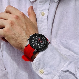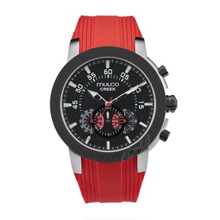 黑色表盘红色硅胶表带个性 CREEK 石英运动欧美 mulco男手表 代购