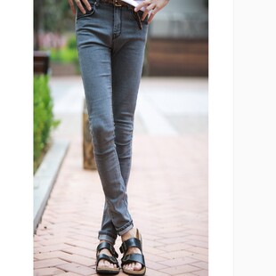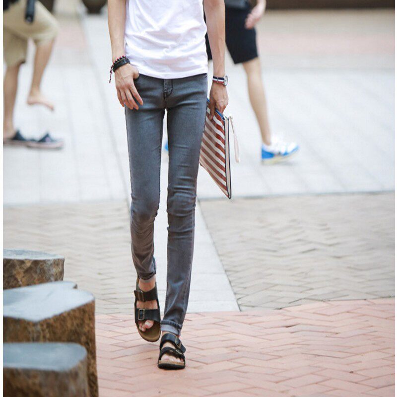 男明星款 男铅笔春款 做旧低腰灰色紧身小脚弹力牛仔裤 韩国复古个性