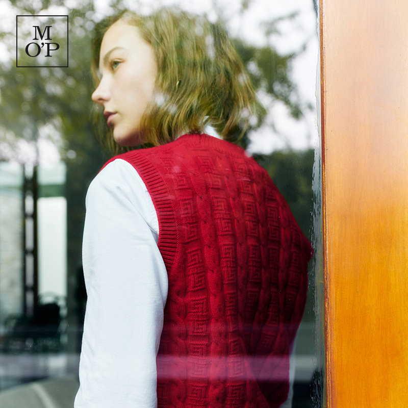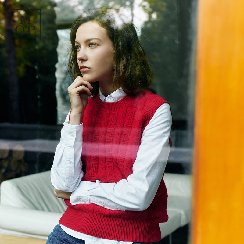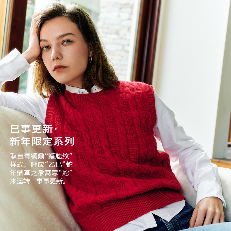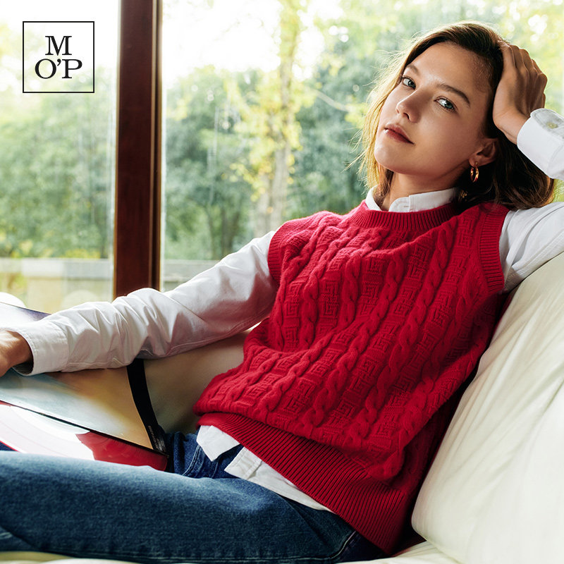 新款 Marc MOP新年系列25春秋季 Polo 绵羊毛圆领绞花针织背心女