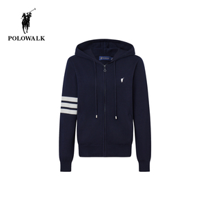 混纺连帽简约百搭开衫 针织女秋冬新款 POLOWALK衫 外套 含绵羊毛