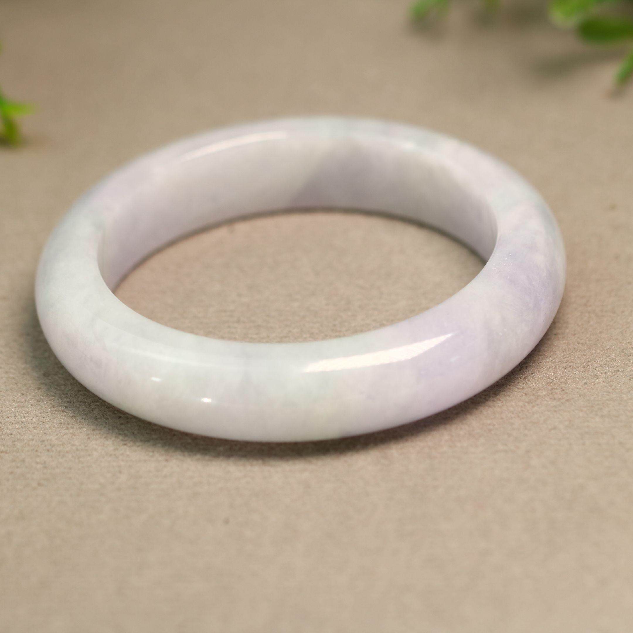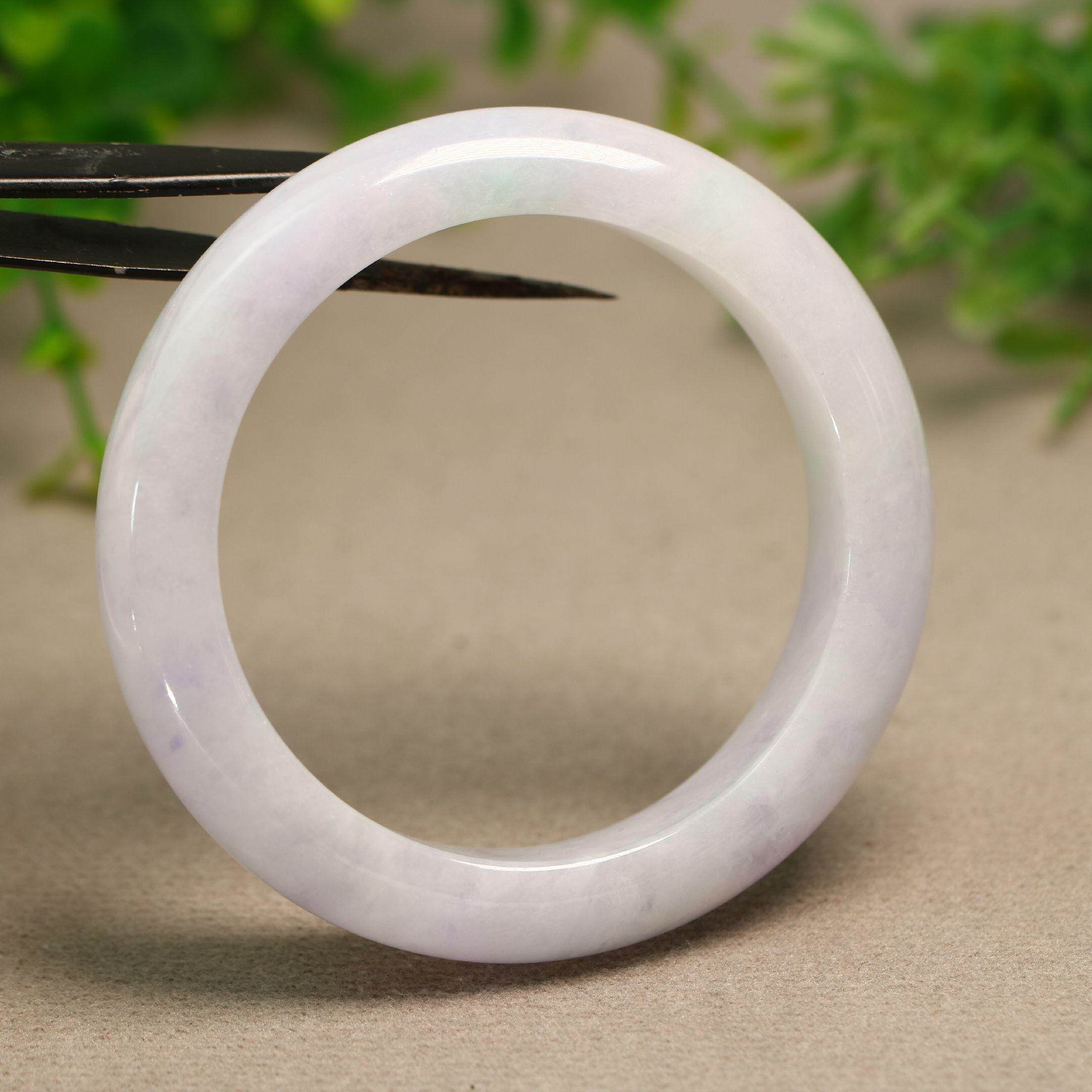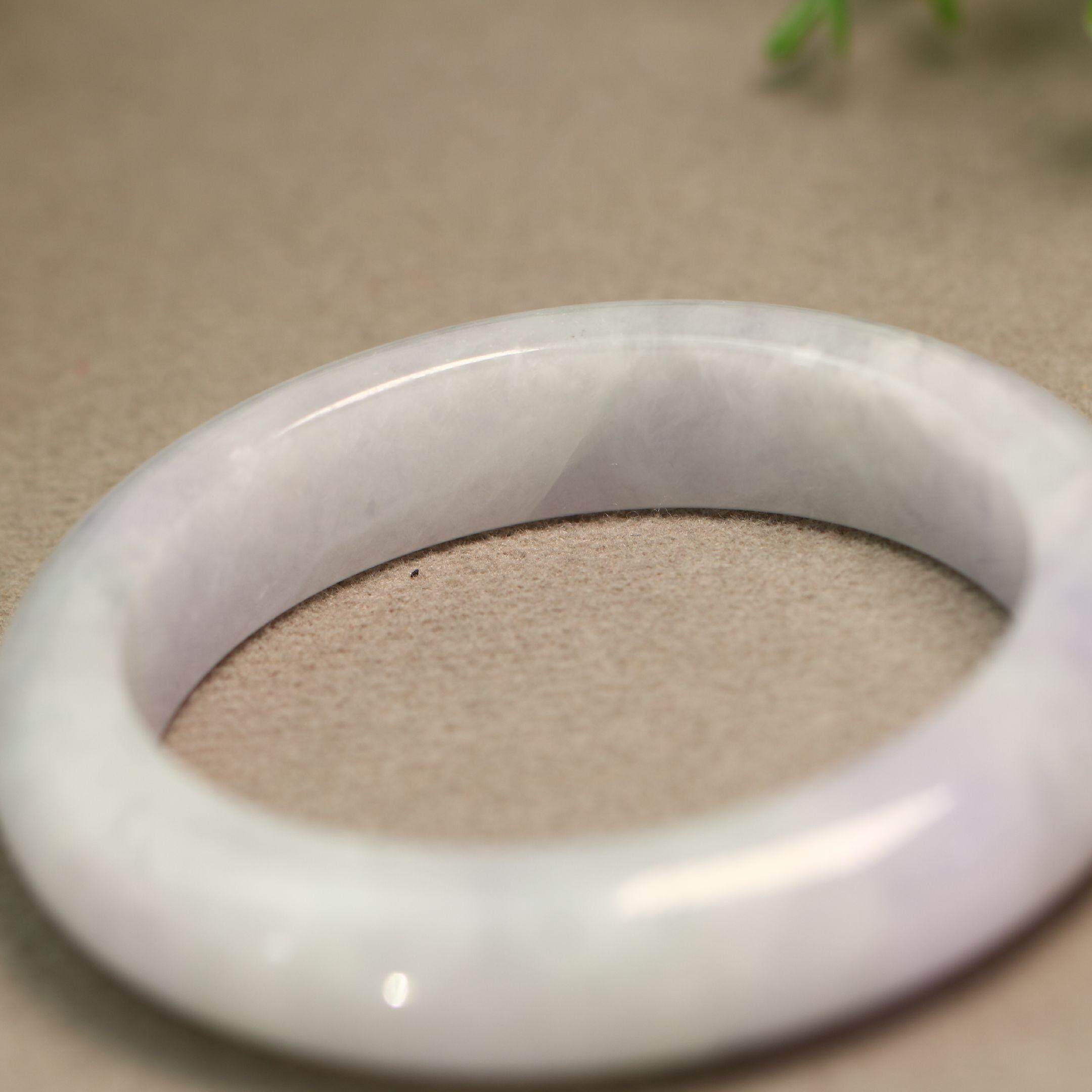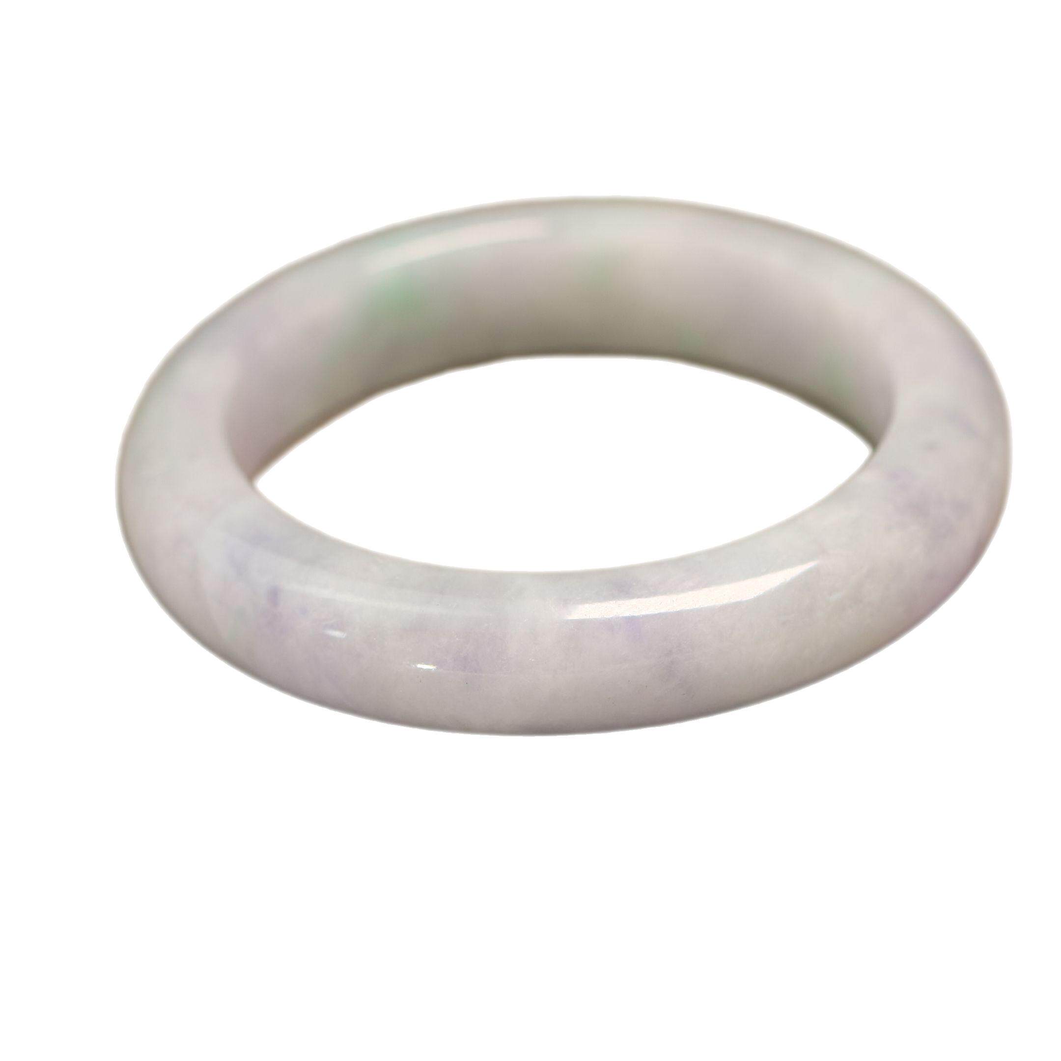 54MM圈口糯底紫色飘绿花天然A货翡翠正圈手镯 E431