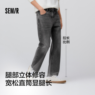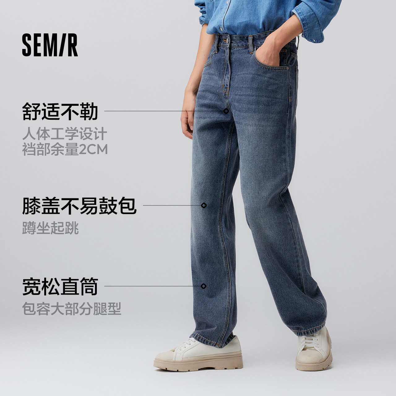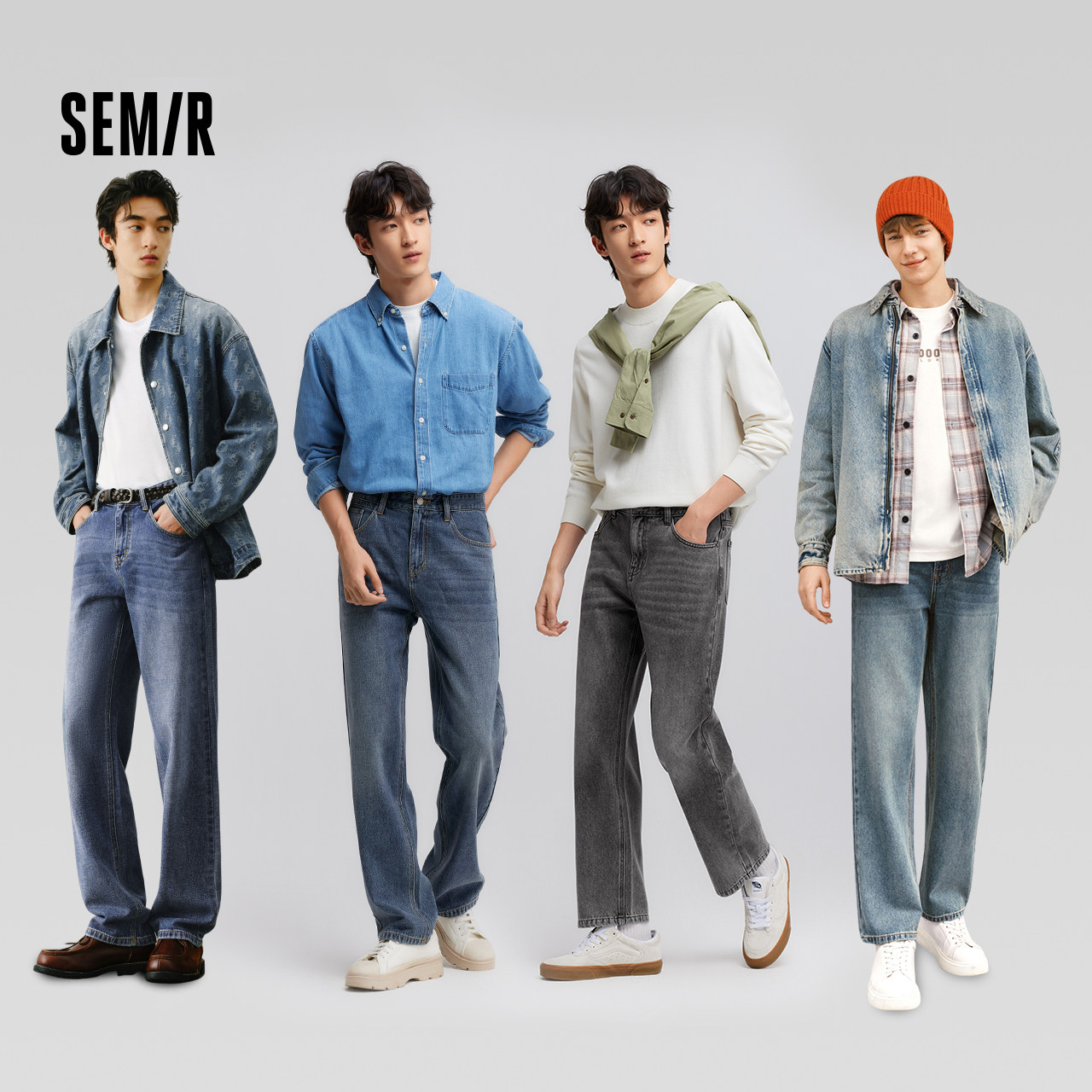 森马牛仔裤 复古宽松直筒裤 男2026春季 长裤 简约浅色 新款 森柔牛仔