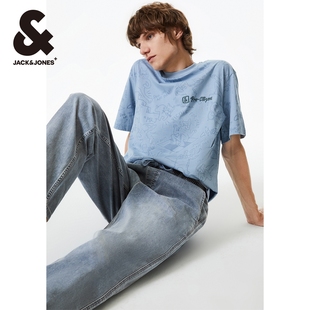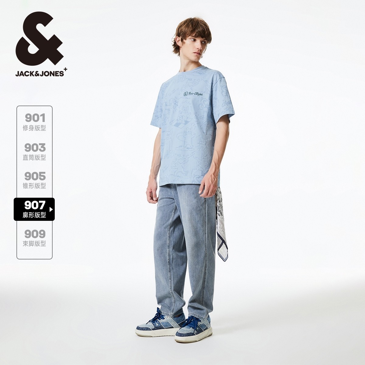 子 男秋潮牌青少年水洗宽松直筒裤 V37美式 侧边织带条纹拼接牛仔裤