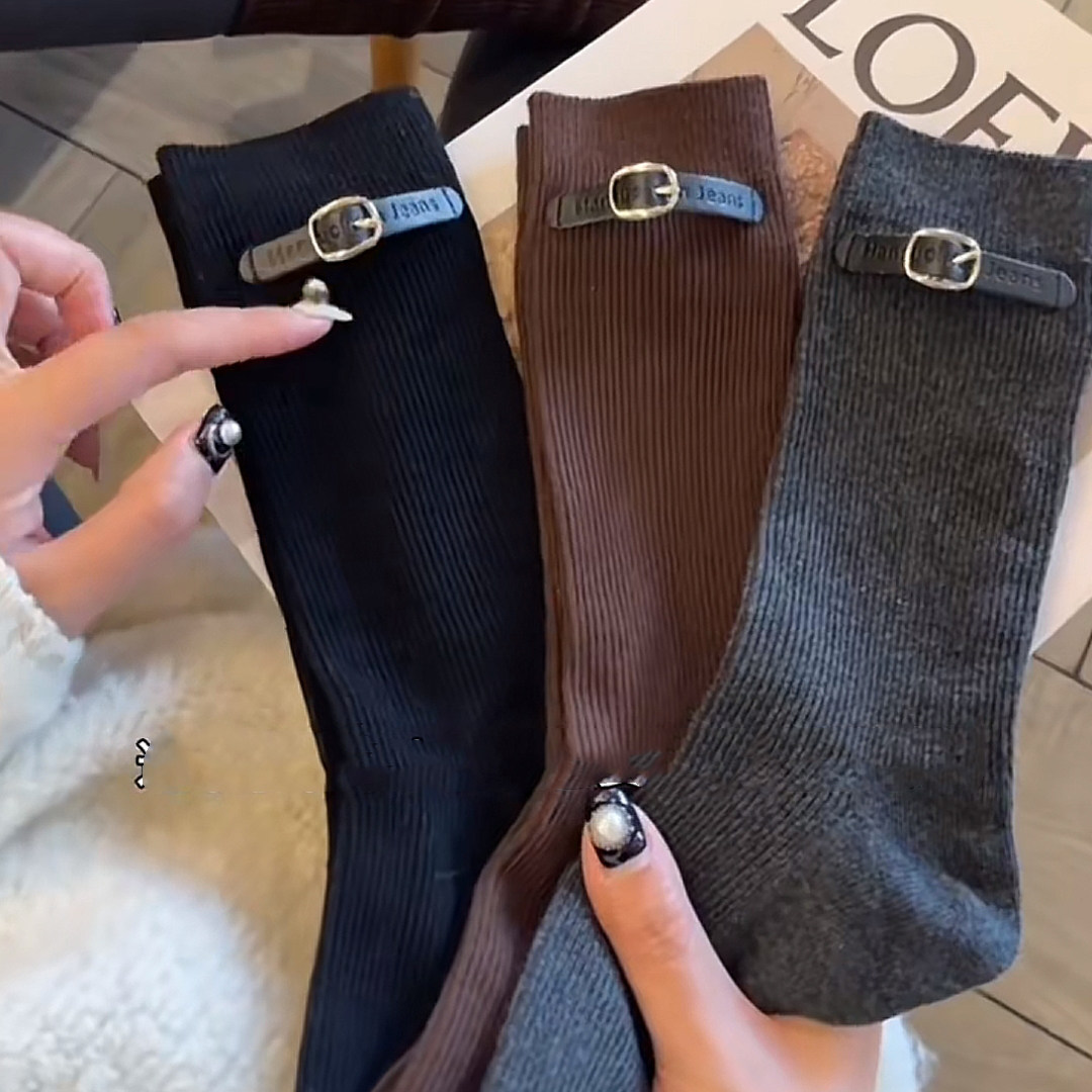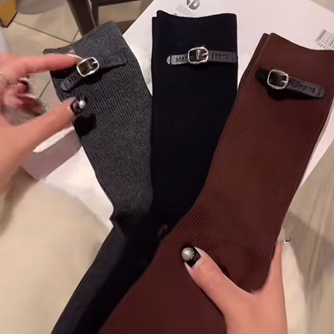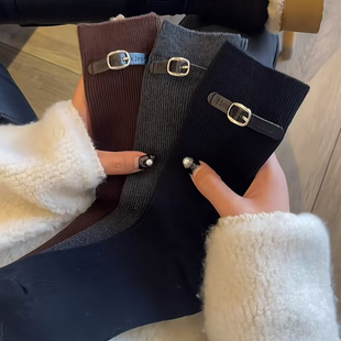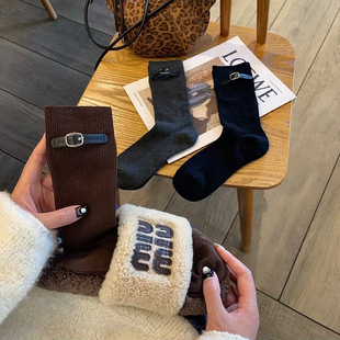 新款 安纯棉袜子皮扣饰品洋气轻奢小众外穿好看百搭韩国东大门