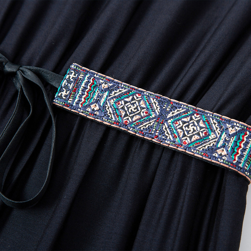 HUI卉榉木醋酸桑蚕丝真丝苗族叠绣重工压褶四印苗可拆腰带连衣裙