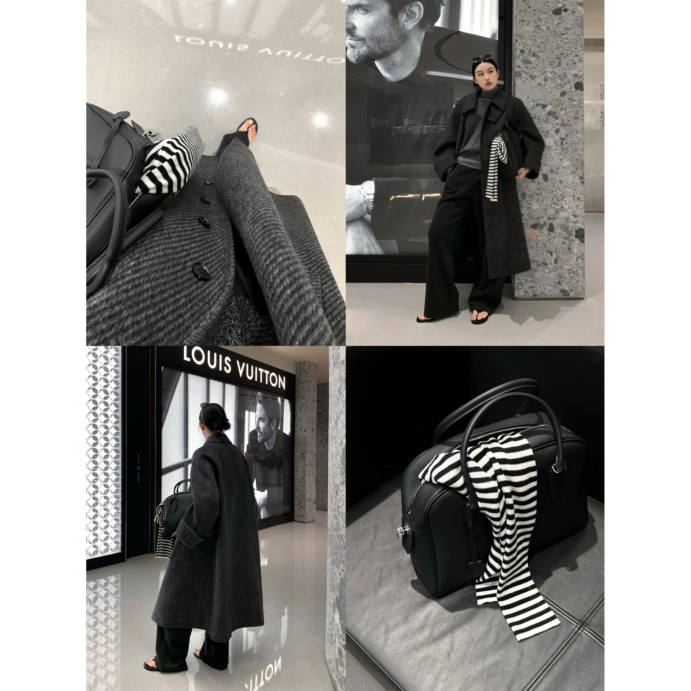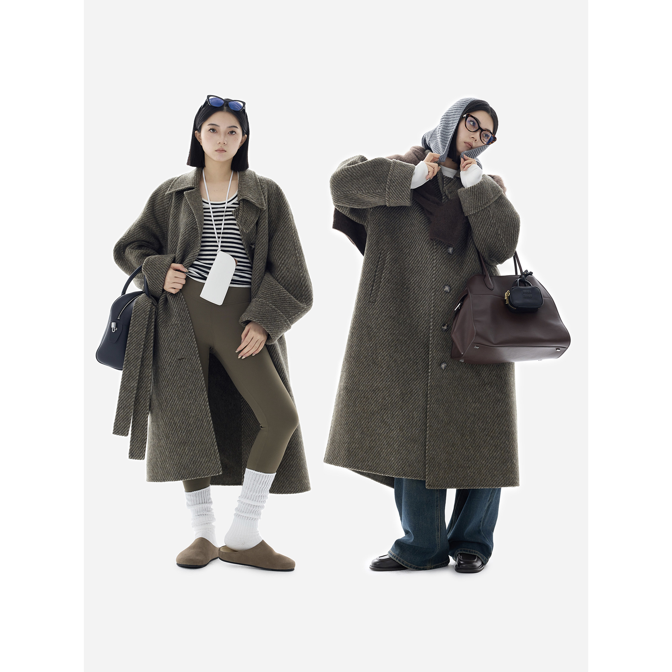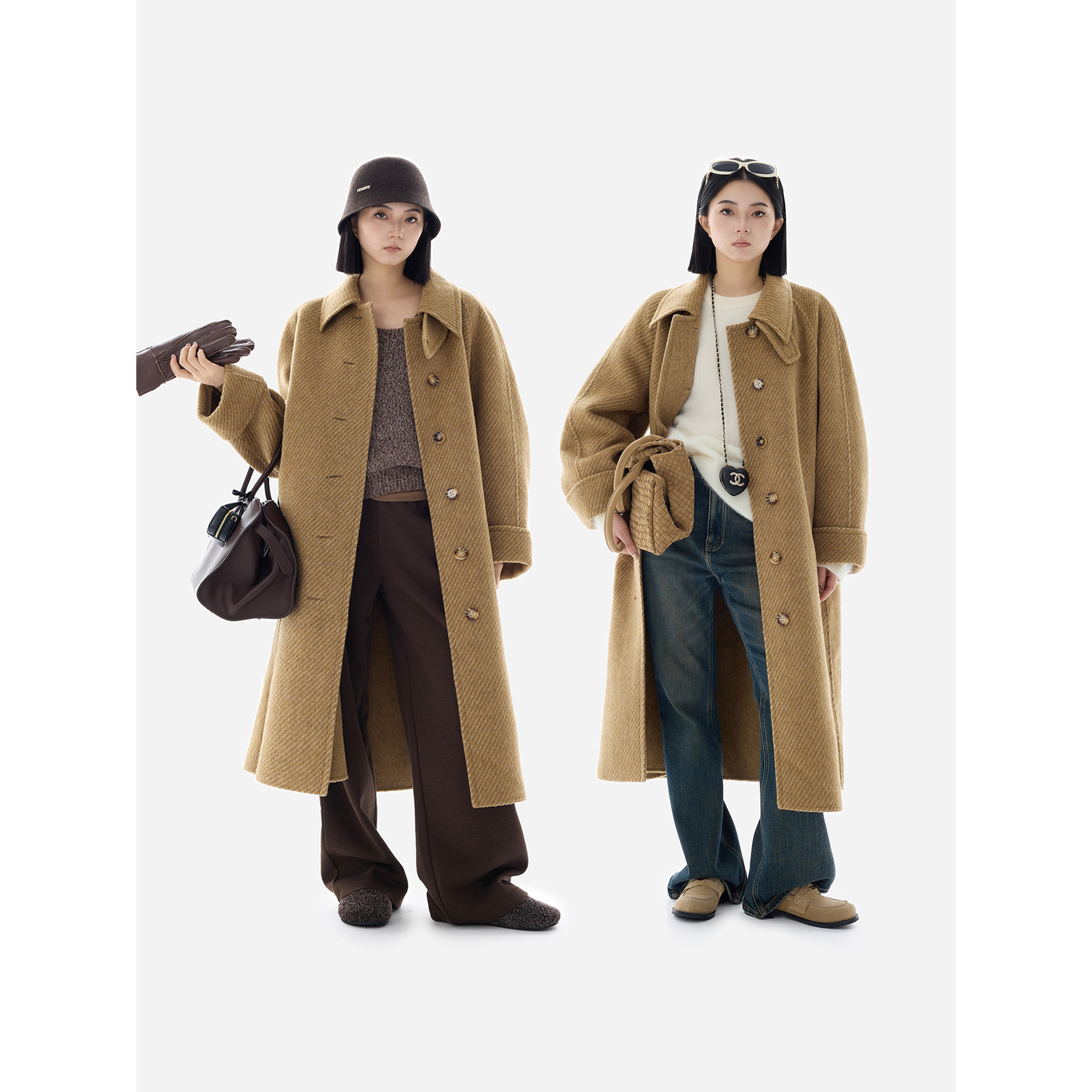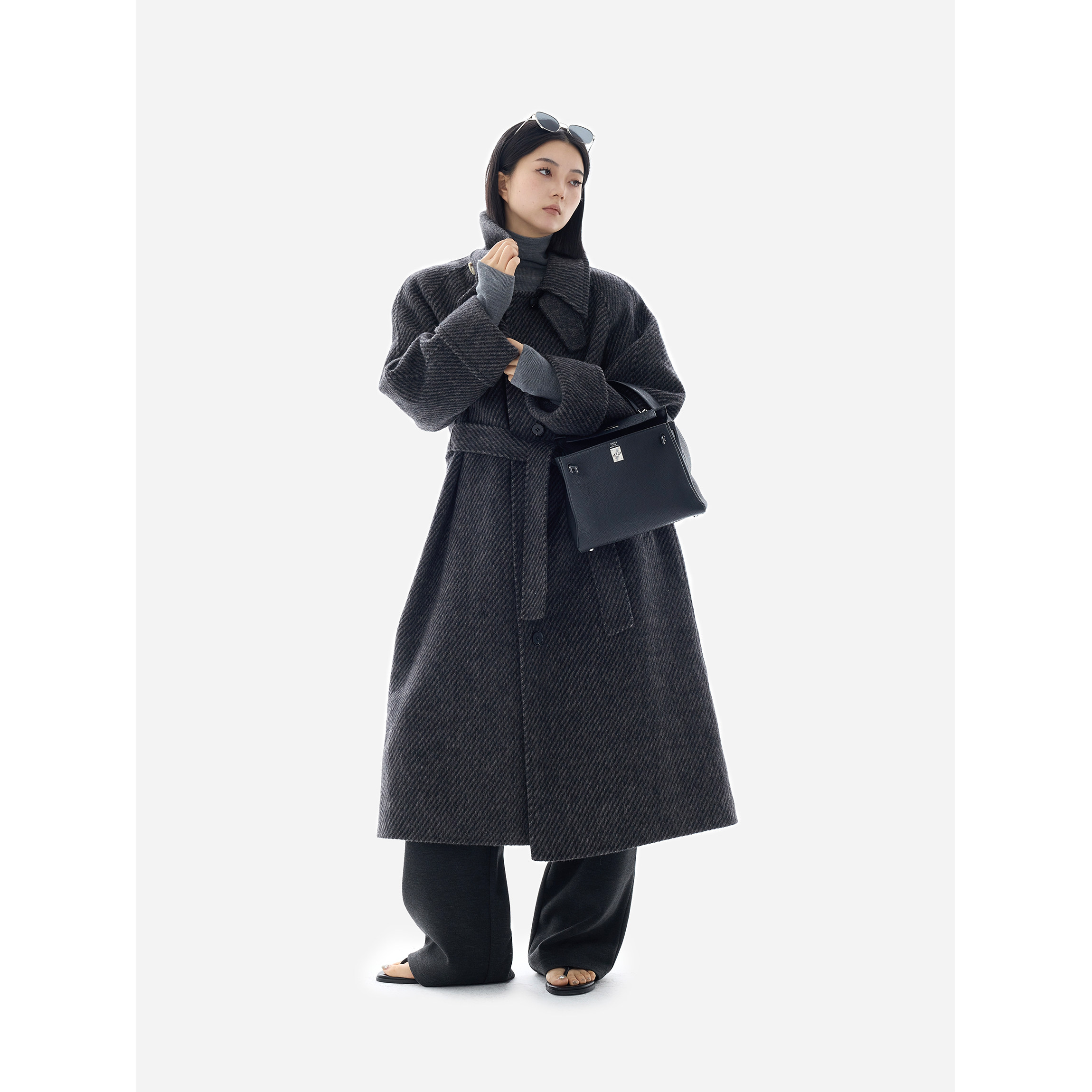 HONORE古月 vintage天丝羊毛肌理感高开衩复古风古着大衣 Retro
