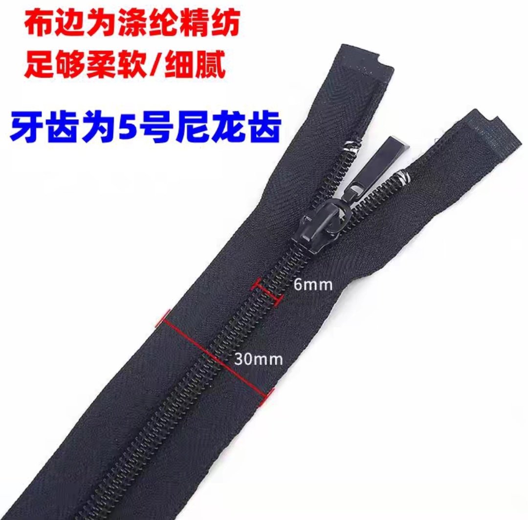 3号尼龙开口拉链童装 羽绒服上衣棉外套帽子拉锁防护服塑料细帽链