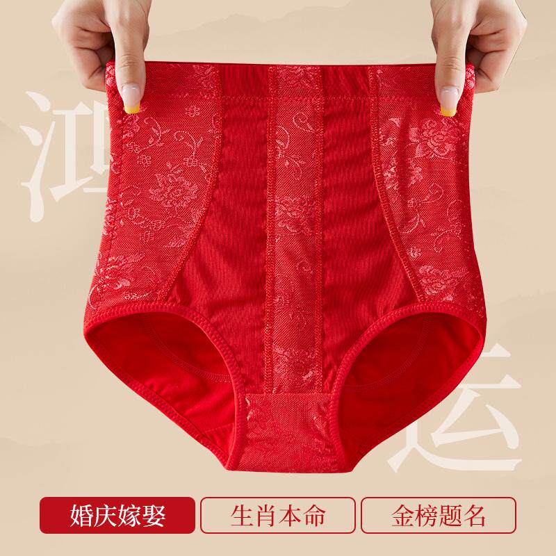 大红色本命年高腰收腹内裤 强力收小肚子提臀塑身束腰束腹马年女士