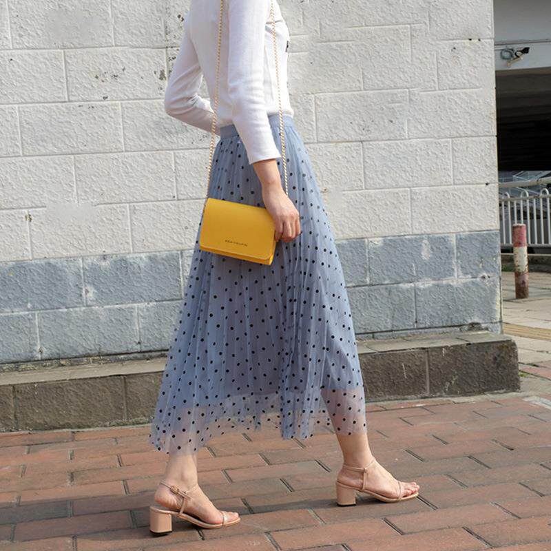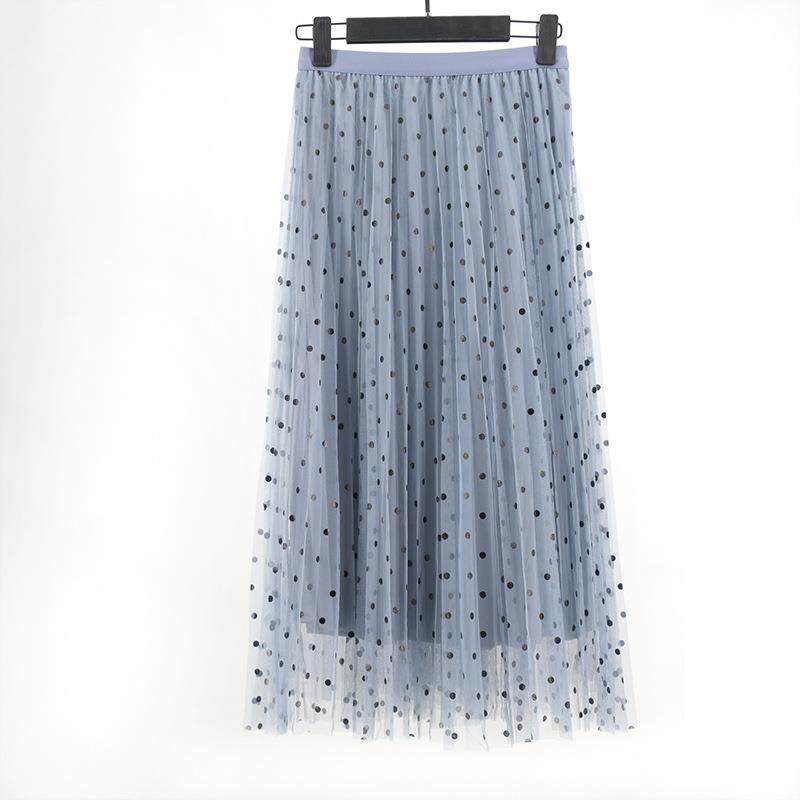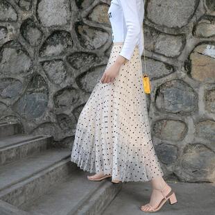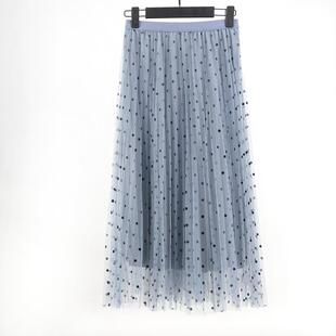 韩版 新款 网纱百褶裙中高腰显 半身裙2027 波点a字裙纱裙女