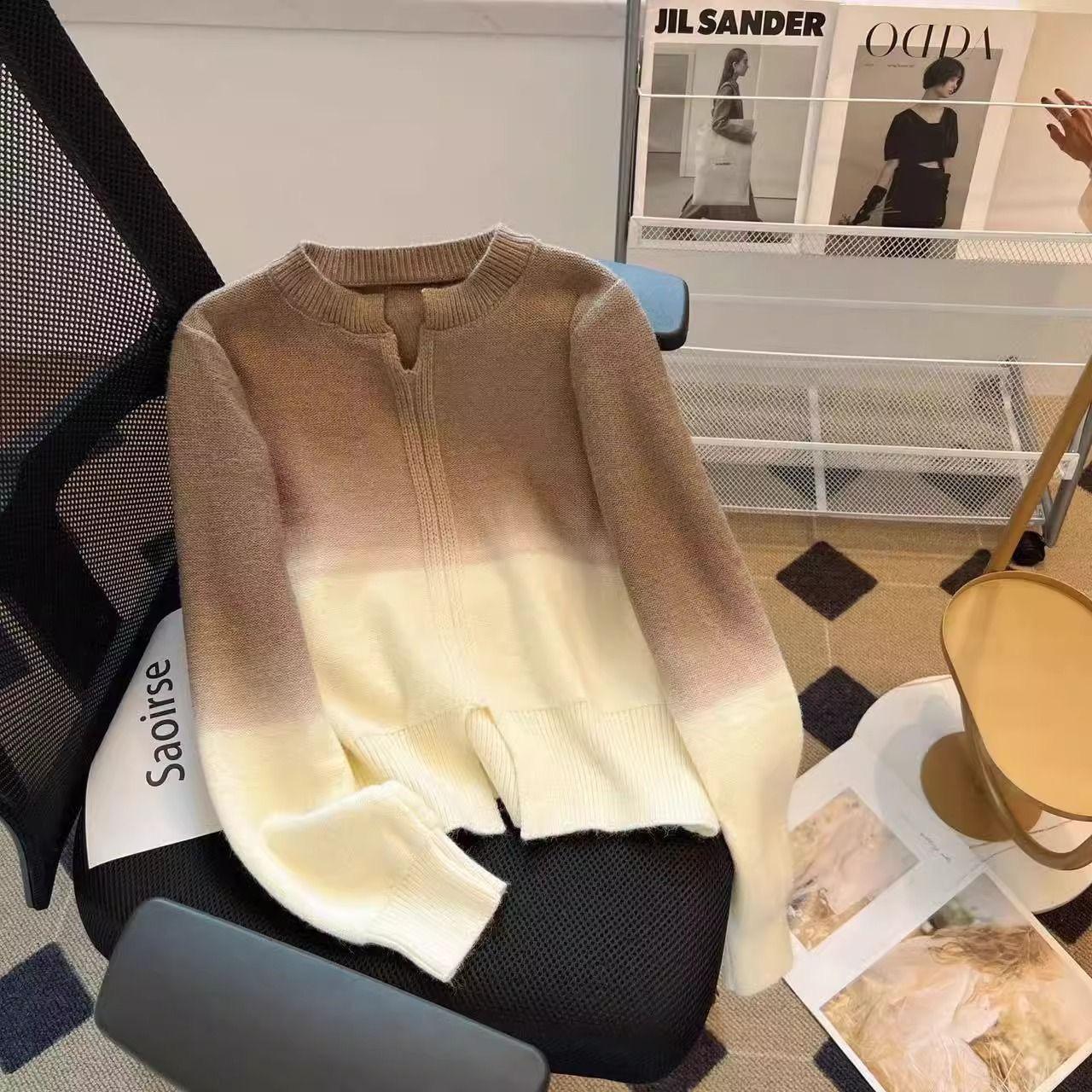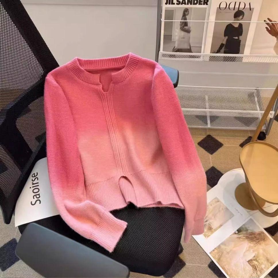 慵懒风针织上衣 修身 今年流行漂亮渐变V领毛衣女2024春季 新款