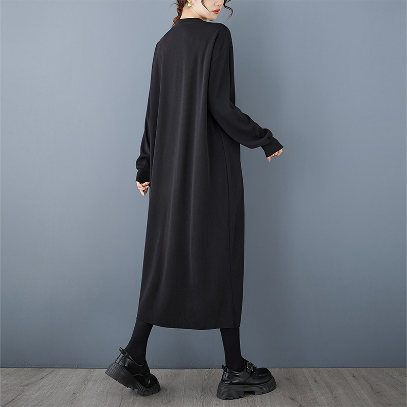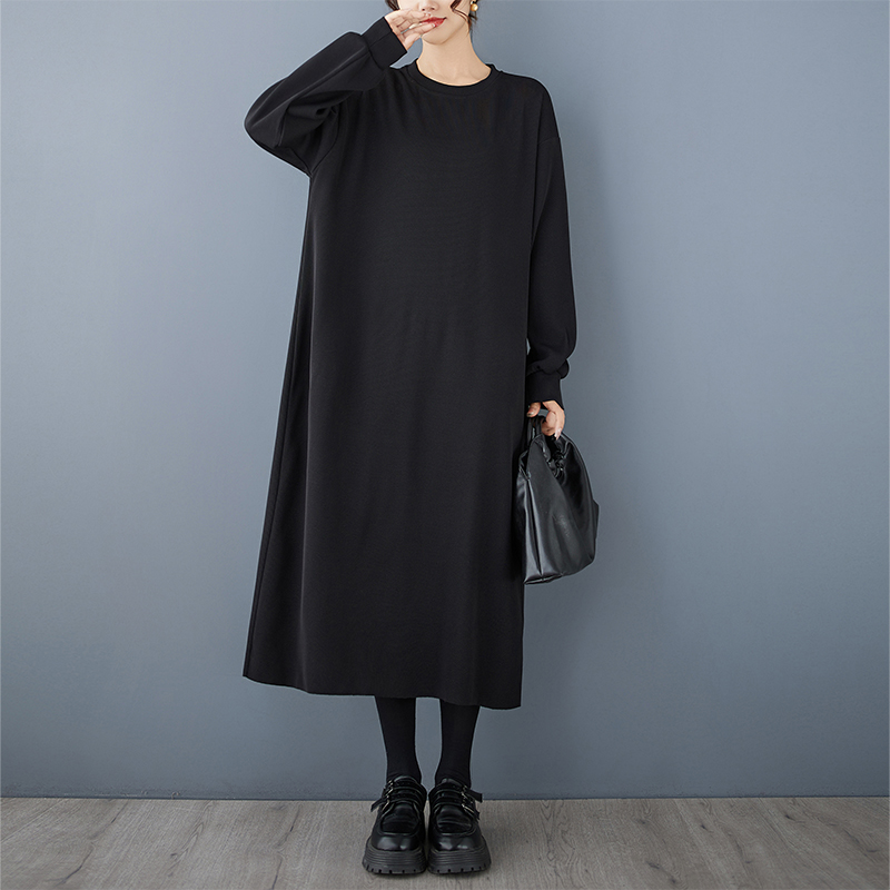 纸片人黑色中长款 连衣裙女气质宽松显瘦遮肚子高级感长裙T恤裙子