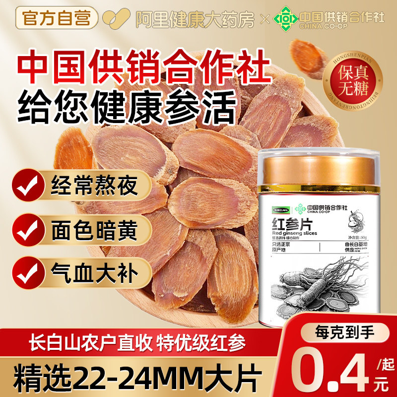 中国供销社红参片无糖官方旗舰店正品 长白山人参高丽参干非中薬材