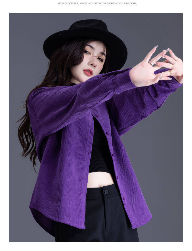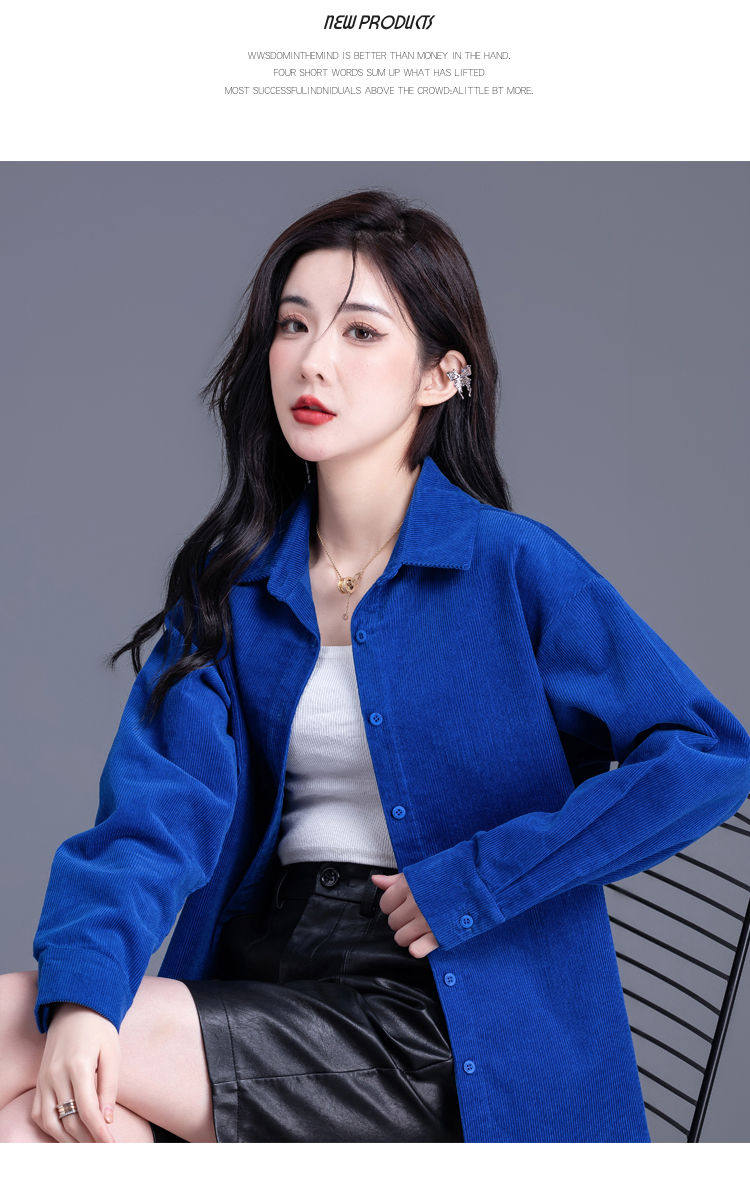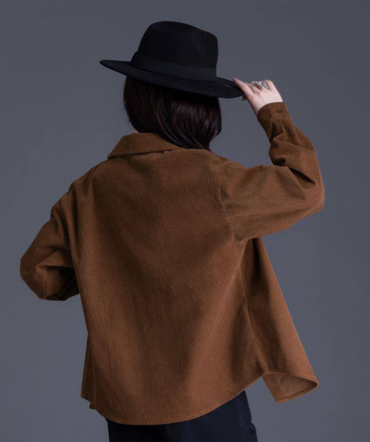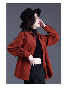 早春款 咖色灯芯绒衬衣外穿百搭外套长袖 新款 法式 上衣女 超好看衬衫