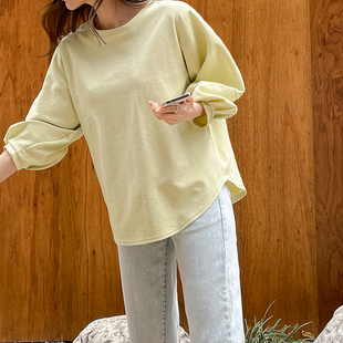 显瘦百搭 宽松双面棉早秋圆领套头女t恤七分袖 T249韩国女装 新款