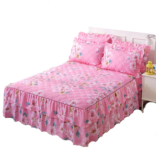 新款 1.8m床上三件套花边床群防滑床单保护套 夹棉床裙床罩单件1.5