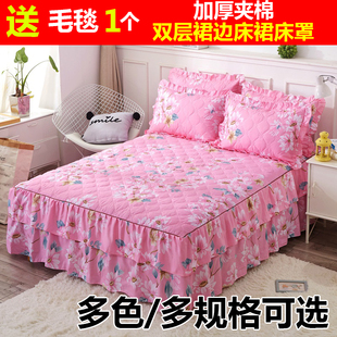 全棉床裙夹棉床笠单件纯棉床盖防尘床单床垫防滑三件套四季 通用