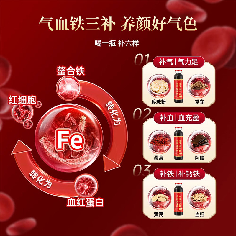 同仁堂阿胶黄芪党参补气补血口服液浆女生补气养血调理正品 旗舰店