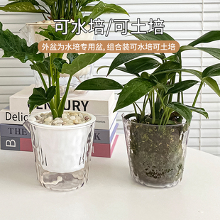 自吸水花盆家用塑料多肉懒人繁星透明加厚桌面水培绿萝双层花卉盆