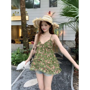 t恤女 宽松背心带胸垫免穿文胸上衣抹茶绿吊带小清新无袖 新款 大码