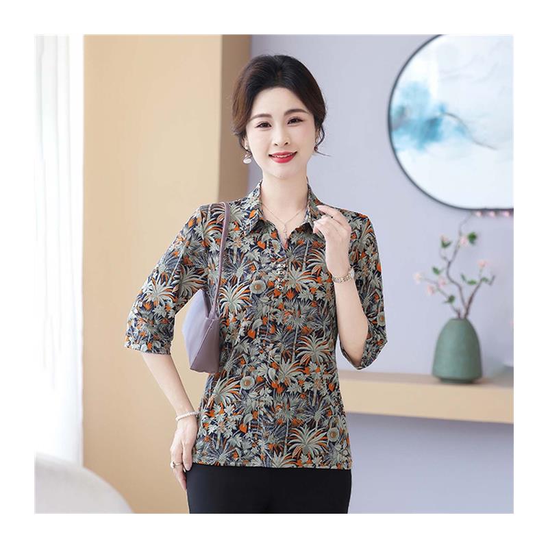 气质碎花衬衫 夏季 妈妈夏装 洋气短袖 2025新款 小衫 中老年女装