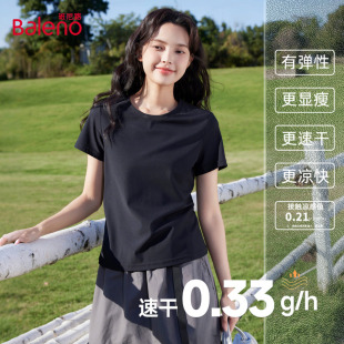 凉感t恤女士流行休闲透气运动短袖 班尼路绿色速干上衣女夏季 新款