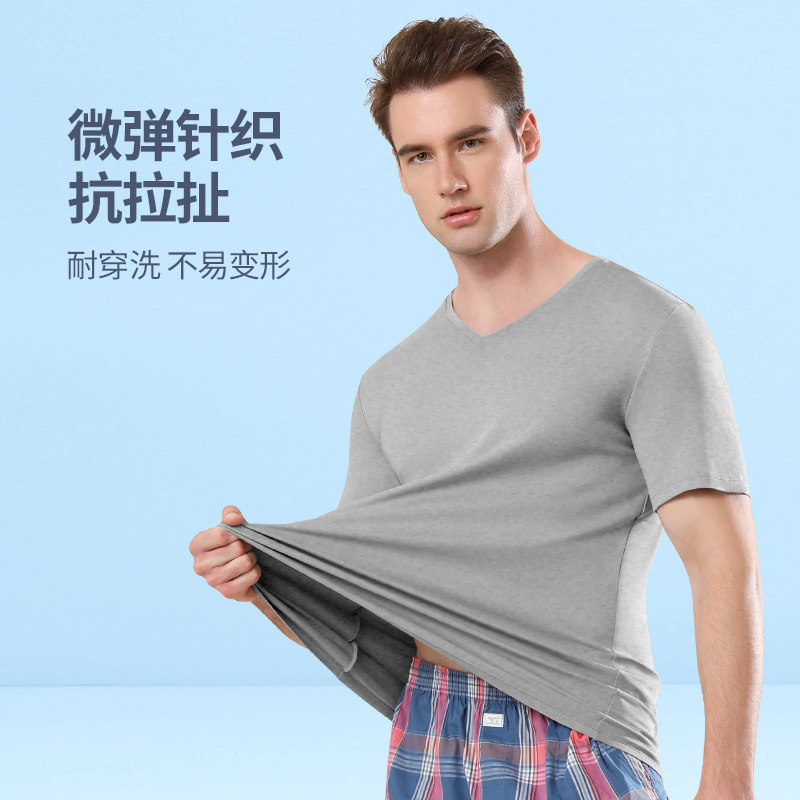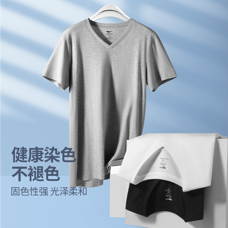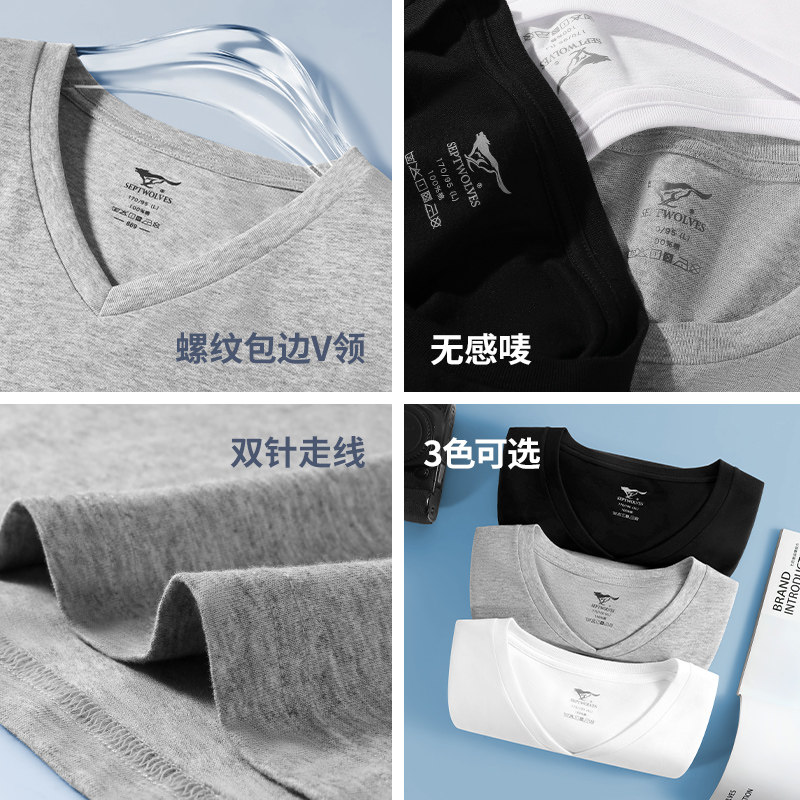 夏季 七匹狼纯棉t恤男士 黑色简约打底汗衫 v领高端品牌体恤男装 短袖