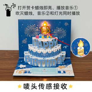 生日贺卡立体放烟花音乐录音3d手写情侣好物高级感礼物手工小卡片