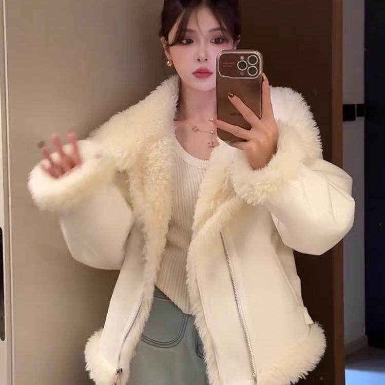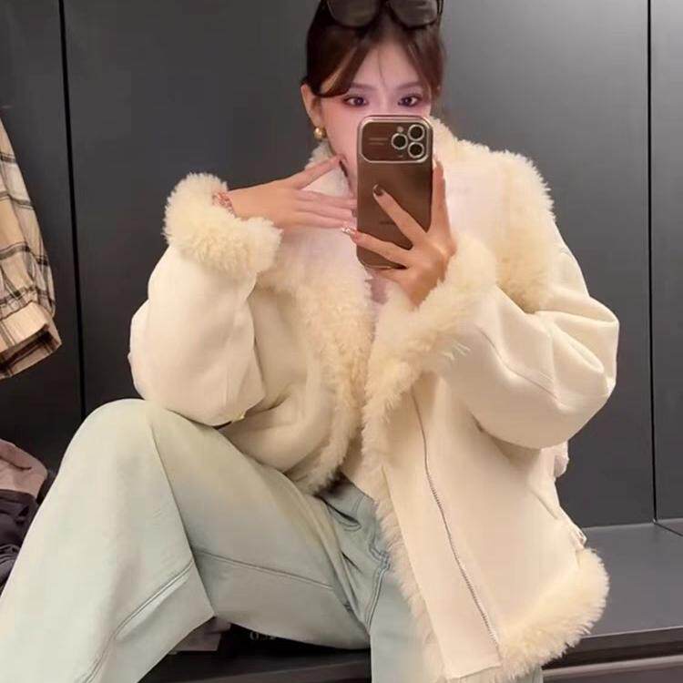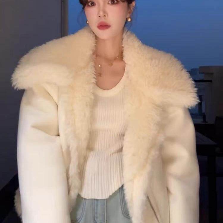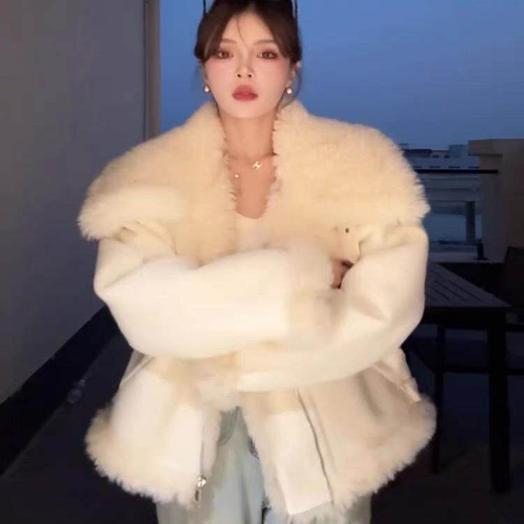 秋冬 环保羊羔毛皮毛一体外套女2024新款 白色毛毛皮草大衣短款 爆款