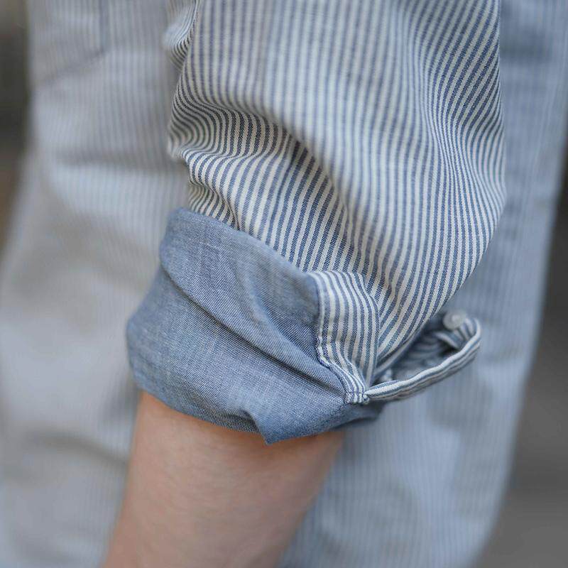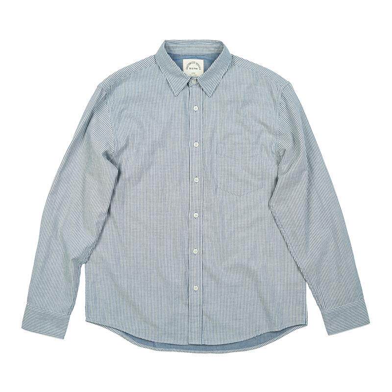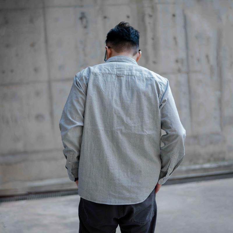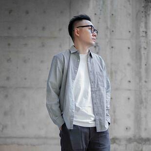 秋季 复古宽松衬衣百搭纯棉青年衬衫 男潮日系简约长袖 小溪条纹衬衫