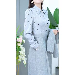 小香风外套 遮肉套装 韩版 新款 蝴蝶结印花连衣裙两件套 女2026秋季