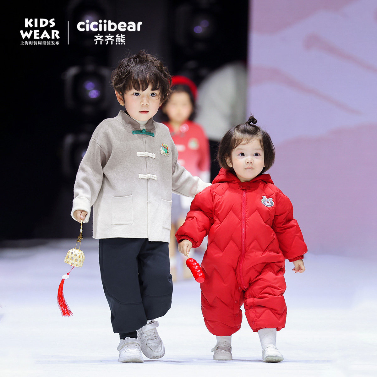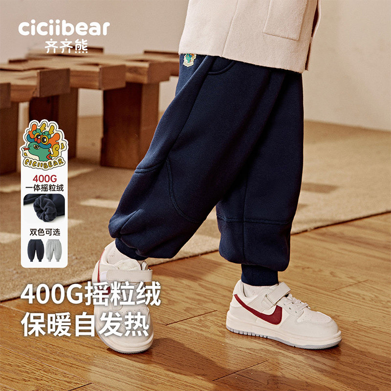 男童保暖长裤 子加厚冬季 齐齐熊宝宝加绒裤 儿童拜年服 400G一体绒