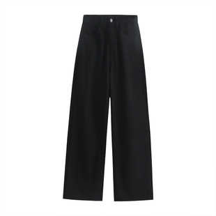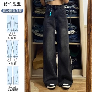 春秋加绒黑灰色阔腿裤 300斤胖mm美式 女装 女大码 子 复古拖地牛仔裤